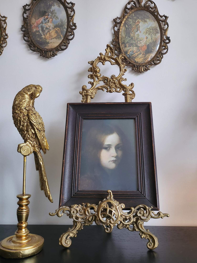 Remarque importante : le support en laiton doré visible sur les photos (chevalet) n’est pas à vendre