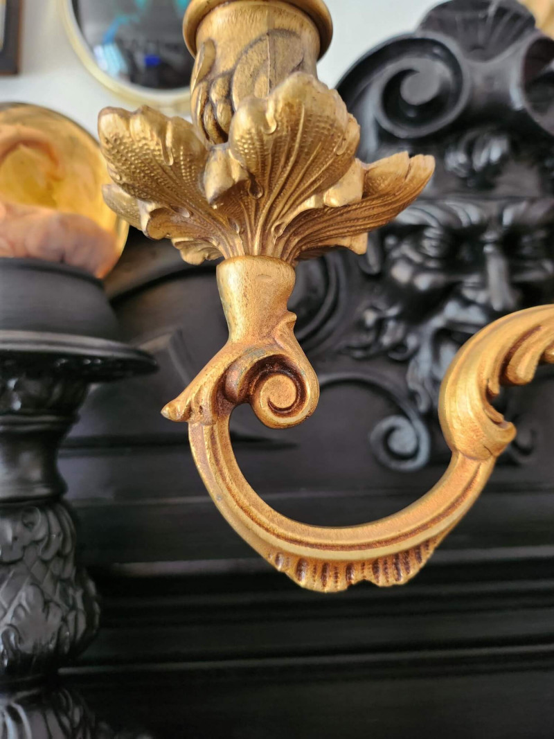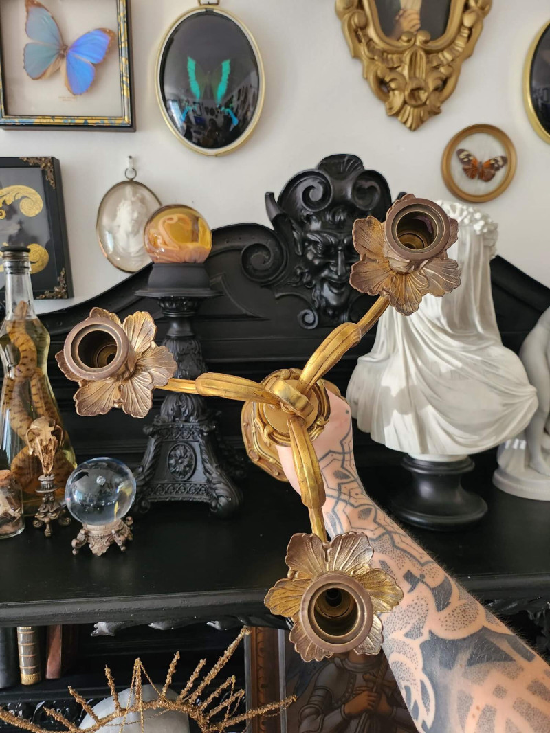 Superbe paire de chandeliers en laiton à trois branches - style baroque / gothique